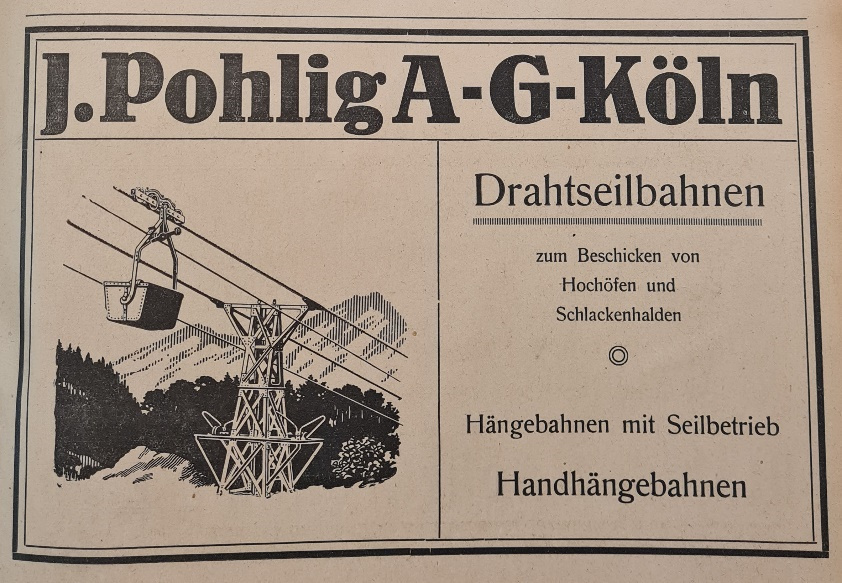 Werbeanzeige des Seilbahnherstellers Pohlig von 1922