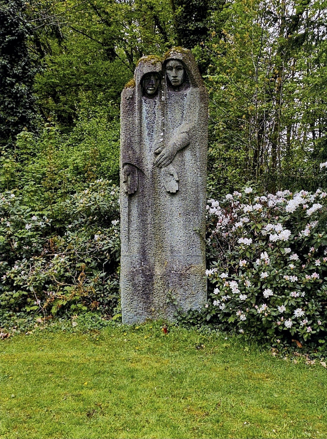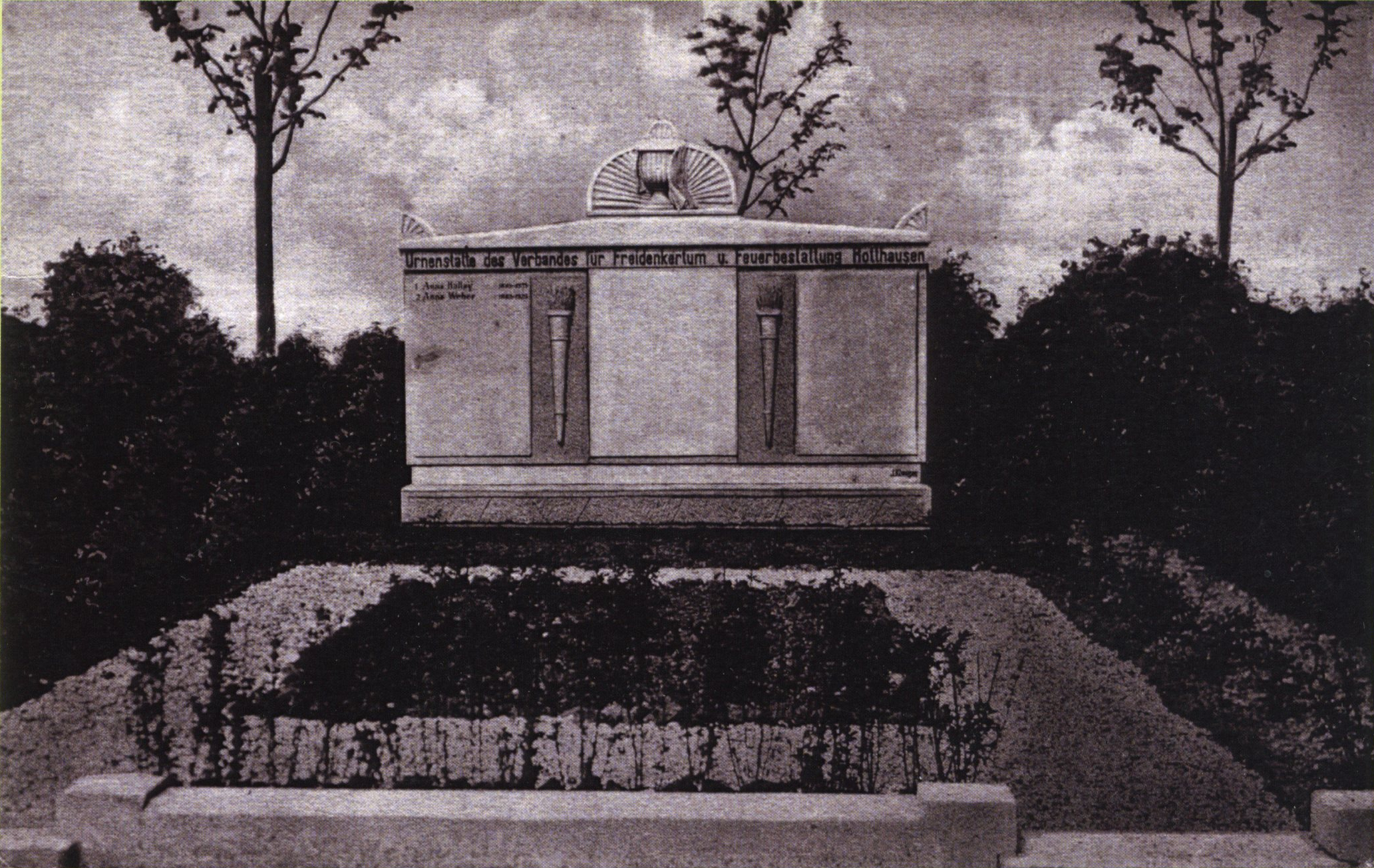 Die Urnenstätte mit seinem eindrucksvollen Grab- und Gedenkstein, mit den Namen der ersten beiden Verstorbenen.